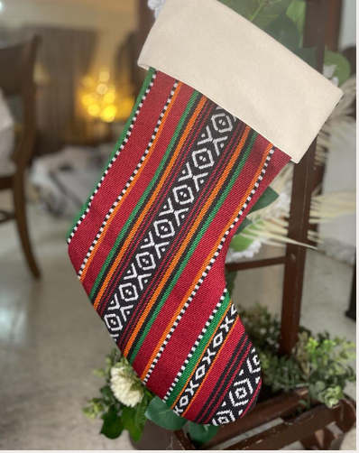Add a UAE touch to your holidays with Christmas stockings made from Sadu fabric.